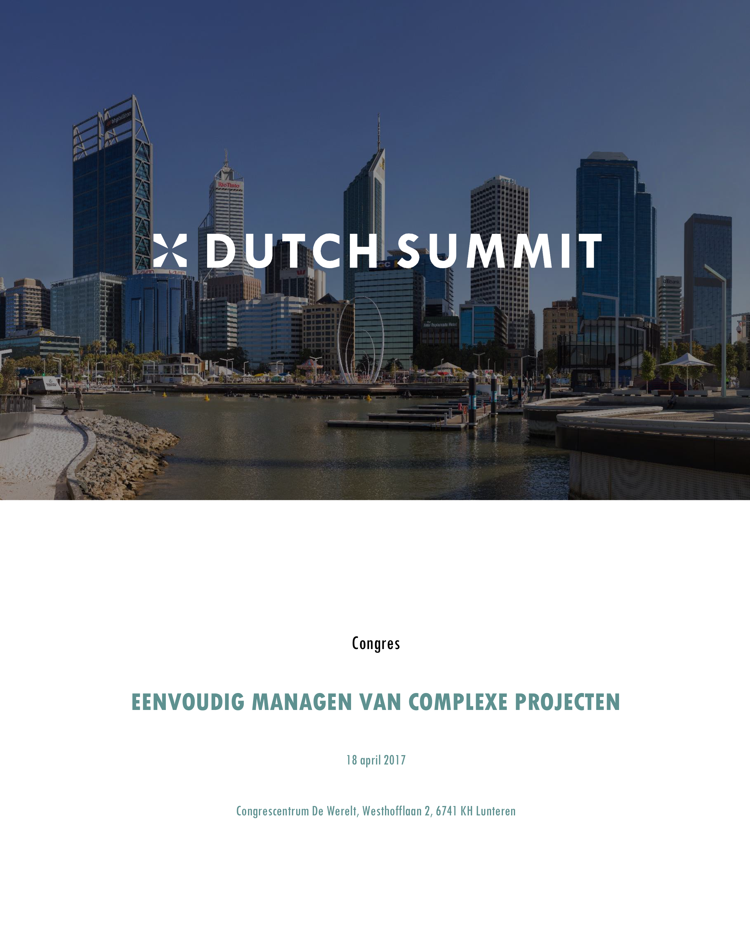 Het aanleggen en beheren van (spoor)wegen, energiecentrales, windparken en chemische clusters zijn voorbeelden van complexe projecten. Tegelijkertijd zijn ze van groot belang voor de Nederlandse economie. Hoe is deze complexiteit te vereenvoudigen? Normaliter worden dergelijke discussies hoog in een organisatie beslecht. Dutch Summit en haar partners vinden het tijd om hierover van gedachten te wisselen met een ieder die betrokken is bij complexe projecten. Op het congres delen boegbeelden hun waardevolle kennis en ervaringen op het gebied van het vereenvoudigen van complexiteit. Op het congres heeft u als deelnemer meerdere mogelijkheden om mee te discussiëren.